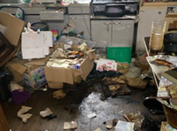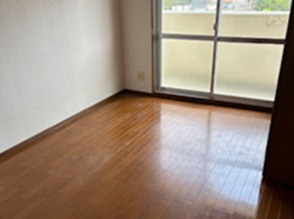 残置物撤去、汚染物全撤去、オゾン脱臭装置による消臭を行い、フローリング張り替えはリフォーム業者に依頼しました。